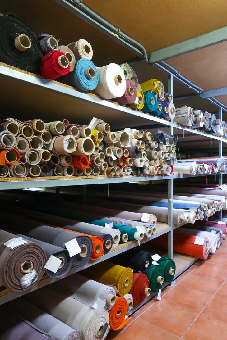 En nuestro almacén tenemos una extensa gama de tejidos naturales o sintéticos, algunas de estas telas son el foscurit o tejido oscurante, tejido jacquar, tejidos con propiedades ignífugas, tejidos simples o estampados, visillos para cortinas, entre otros.